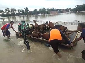 Dia menyebut ada seratusan ekor sapi yang dievakuasi dan dikumpulkan di halaman rumah Tarno di Tugu. Dia mengatakan ketinggian air paling tinggi 1,25 meter di wilayah Tugu.