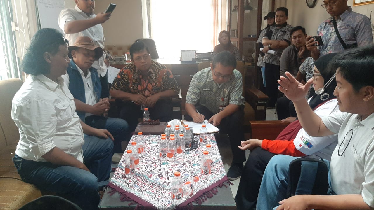 Aliansi Seniman Kota Pekalongan Usai Audensi dengan Dinas Parbudpora di Depan Gedung Olahraga Jetayu Kota Pekalongan