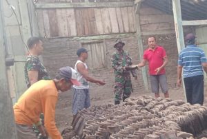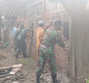 turut serta membantu warga dalam perehapan rumah salah satu warga, kegiatan tersebut merupakan salah satu upaya menjalin silaturahmi dan kerjasama dengan warga di wilayah, untuk menciptakan kemanunggalan TNI dengan Rakyat, ucapnya.
