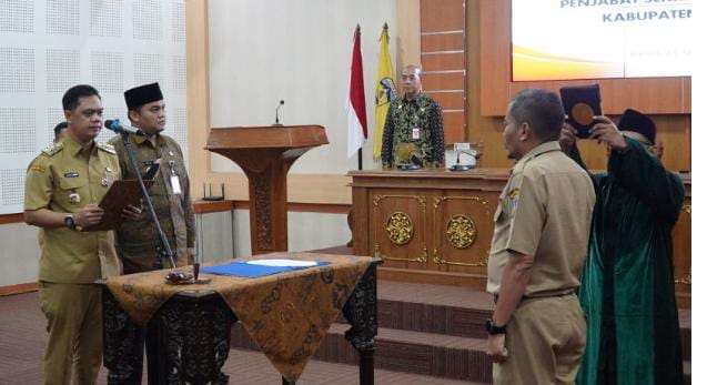 Hadir dalam acara pelantikan, Wakil Bupati Muhammad Ibnu Hajar serta sejumlah pejabat tinggi daerah, seperti Asisten I Ratib Zaini, Asisten II Heri Yulianto, dan Plt Asisten III Aris Setyawan.