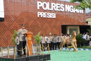 Bertempat di halaman depan Polres Ngawi Presisi, apel pagi diikuti anggota Polri dan ASN sejumlah 250 orang, Kapolres menyampaikan beberapa arahan, diantaranya tentang program kerja Polres Ngawi tahun 2023.
