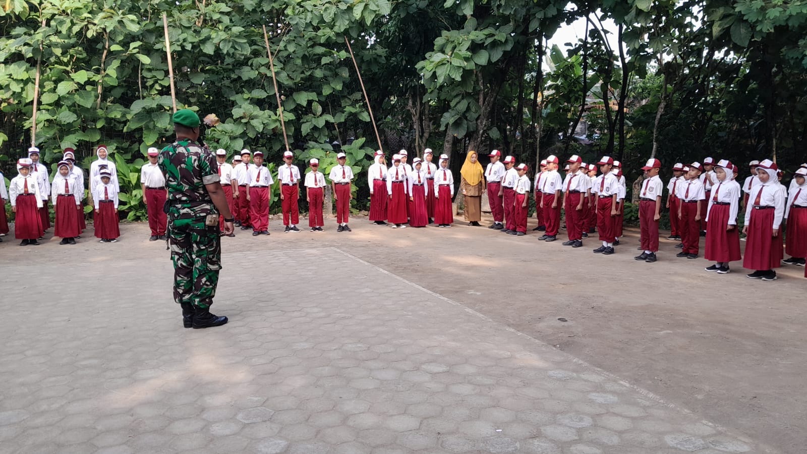 NGAWI – Kilasfakta.com, Babinsa Koramil 0805/02 Paron Kodim Ngawi Sertu Joko Nugroho memberikan materi wawasan kebangsaan kepada para siswa-siswi SDN 3 Jeblogan Kecamatan Paron,