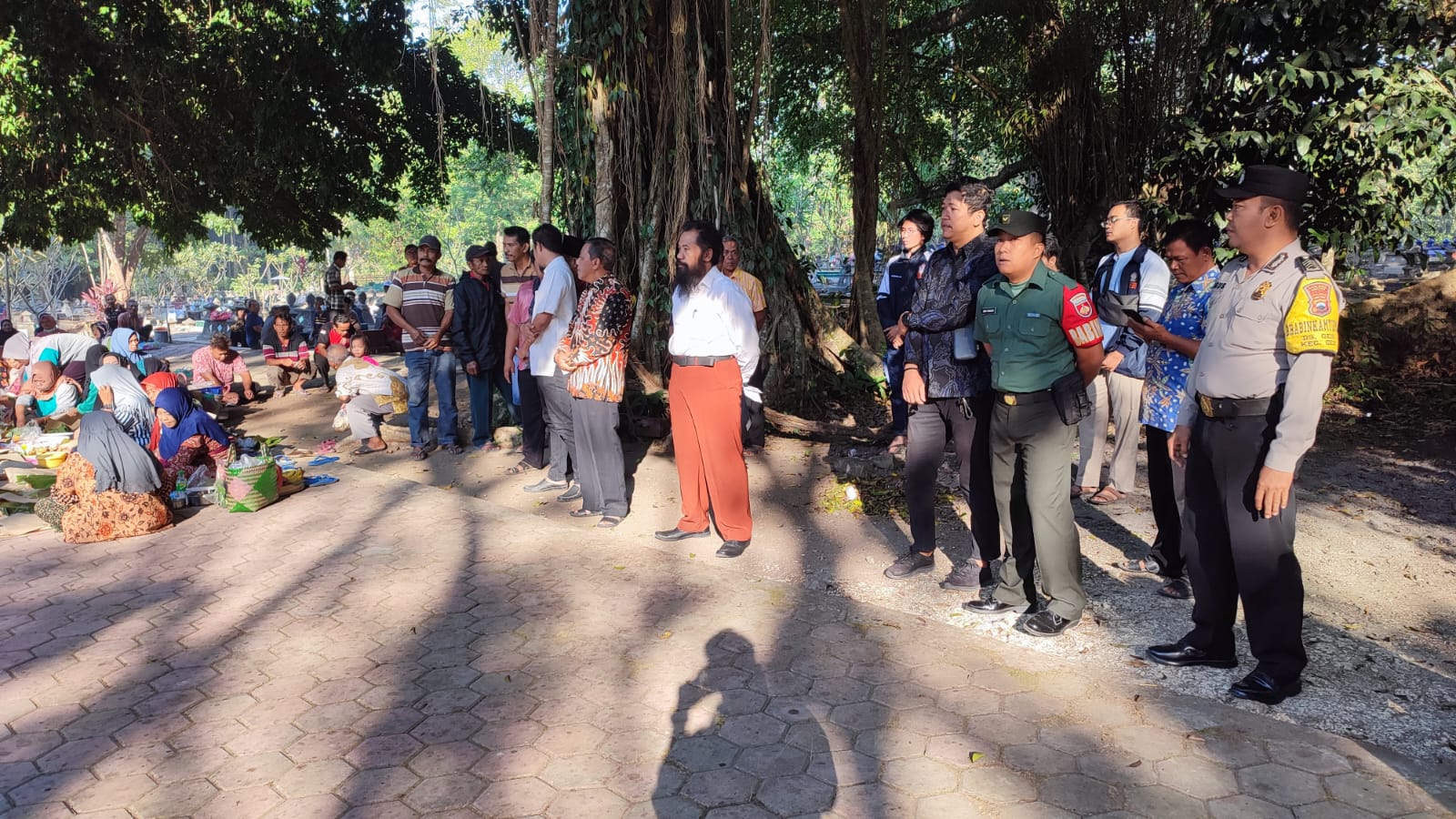 SRAGEN – Kilasfakta.com, Babinsa Koramil 12/ Gesi, Kodim 0725 bersama warga masyarakat menghadiri Tradisi Nyadran di Plataran Makam Desa Gesi, Kecamatan Gesi, Kabupaten Sragen, (18/07/2023).