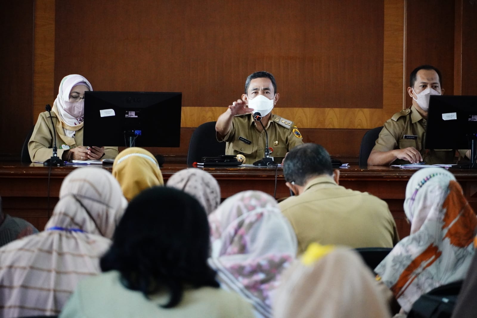 Pada rapat yang turut dihadiri Sekda, Kepala Dinas Kesehatan, Kepala Satpol PP dan para camat, Bupati Haryanto mengatakan di Kabupaten Pati capaian vaksinasi tahap II bagi lansia belum mencapai 60 persen.