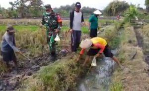NGAWI – Kilasfakta.com, Dukung para petani tingkatkan hasil panen, anggota Koramil Paron Kodim Ngawi Serma Imam bersama kelompok tani melaksanakan gropyokan hama tikus bertempat di area persawahan Desa Ngale Kecamatan Paron,Sabtu (11/02/2023).