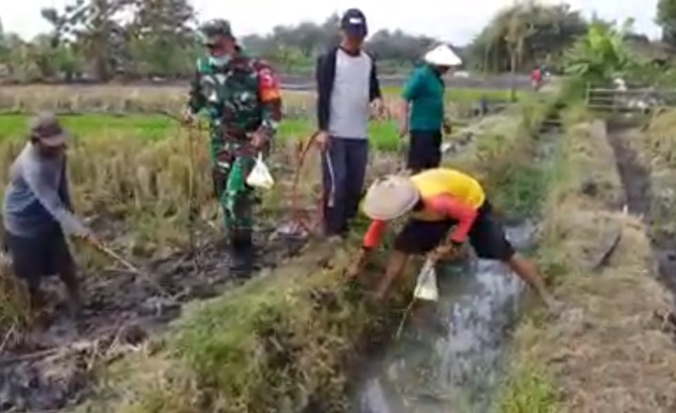 Serma Imam menyampaikan bahwa kegiatan gropyokan tikus ini selain untuk membasmi hama, juga sebagai sosialisasi kepada petani untuk melakukan pemberantasan hama dengan cara manual atau tidak menggunakan jebakan listrik.