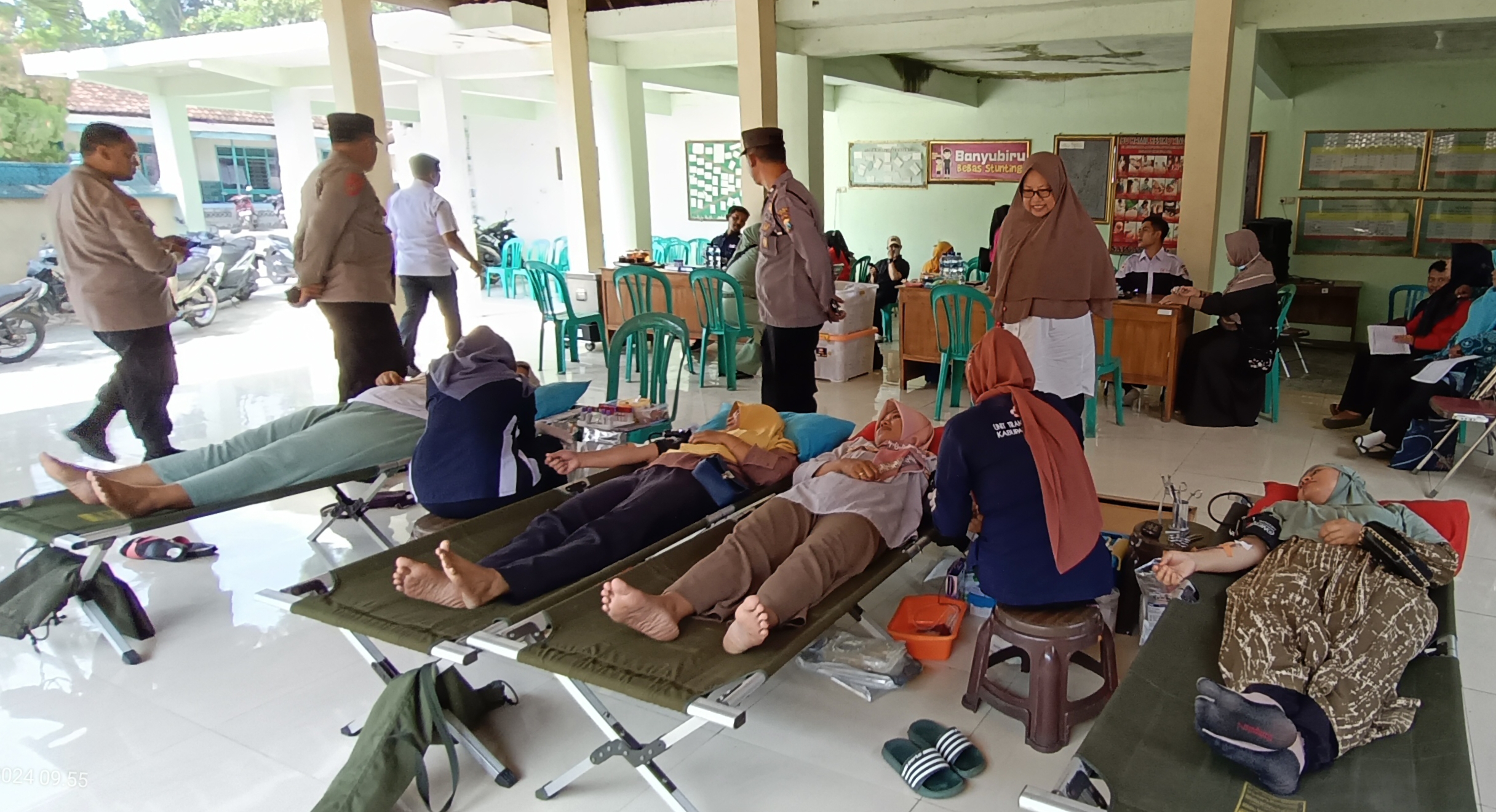 Tampak hadir di lokasi donor darah Kepala Desa Banyubiru beserta perangkatnya, Wakapolsek Widodaren Ipda. Daryono beserta jajaranya dan sejumlah eserta donor darah.