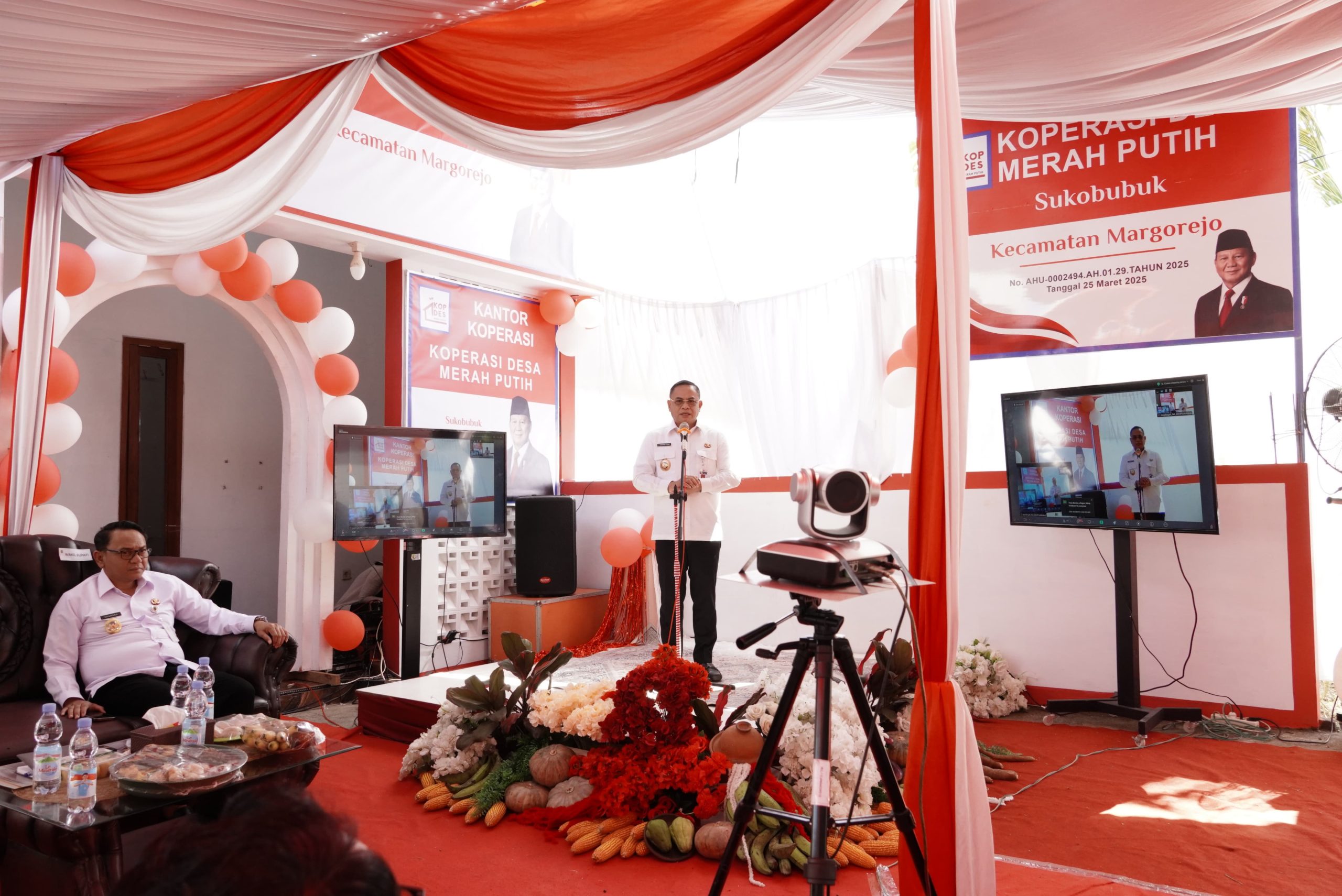 Dalam sambutannya, Bupati menyampaikan bahwa peluncuran program Koperasi Desa Merah Putih oleh Presiden merupakan langkah strategis dalam membangun ekonomi kerakyatan berbasis Pancasila.