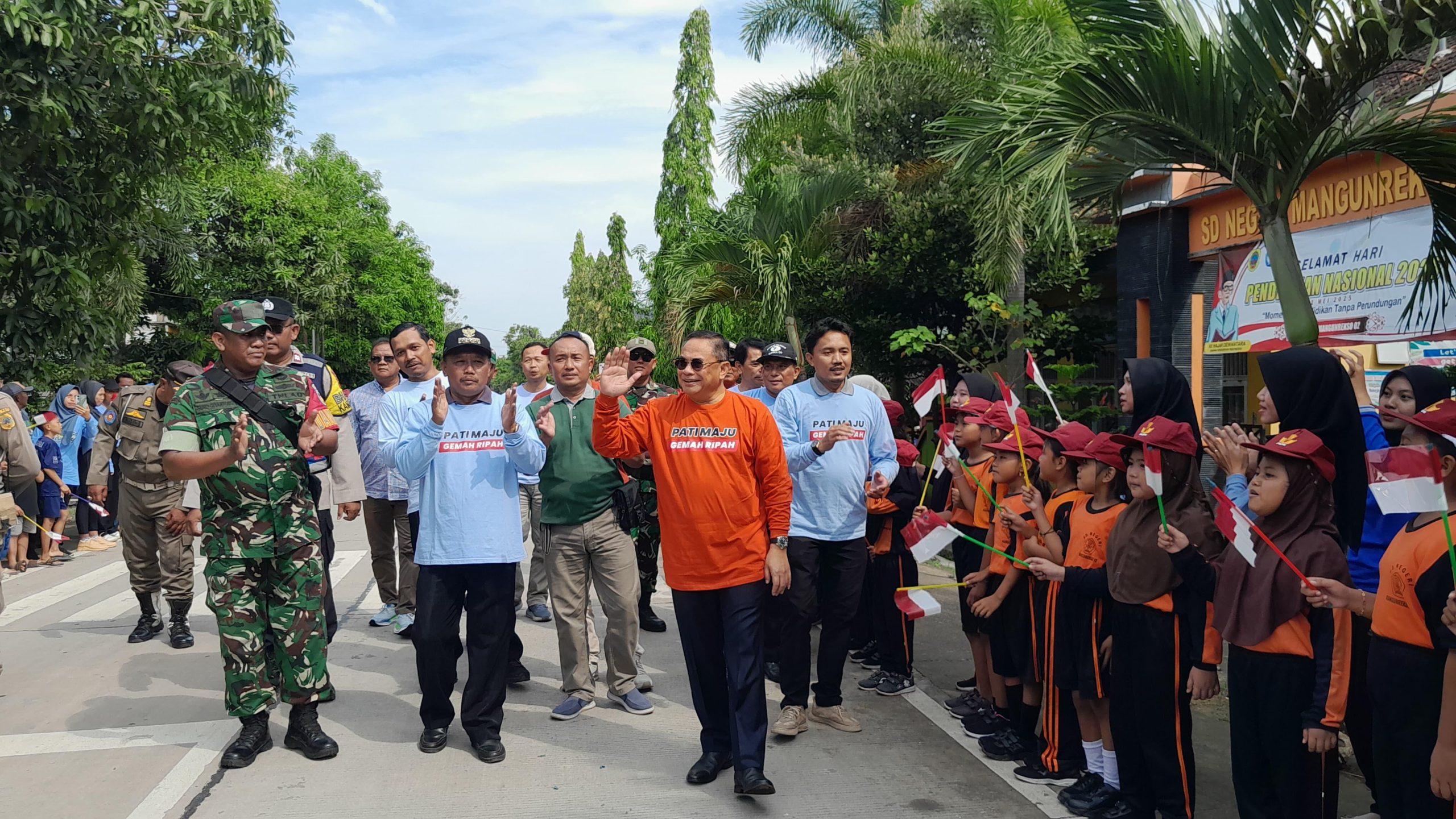 Kunjungan Sudewo kali ini disambut meriah oleh siswa/siswi Sekolah Dasar Negeri (SDN) Mangunrekso 01 dan SDN Mangunrekso 02, serta siswa/siswi Sekolah Menengah Pertama Negeri (SMPN) 3 Tambakromo. Mereka membentuk pagar betis menyambut hadirnya orang nomor satu di Kabupaten Pati tersebut.