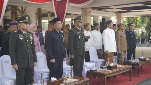 NGAWI – Kilasfakta.com, Komandan Kodim 0805/Ngawi Letkol Inf Adi Wirawan,S.Hub.Int.,M.H.I. bersama Forkopimda menghadiri upacara peringatan hari lahir Pancasila tahun 2023 bertempat di halaman Pendopo Wedya Graha kab.Ngawi Jl.Teuku Umar No.12 Kabupaten Ngawi, Rabu (01/06/2023).