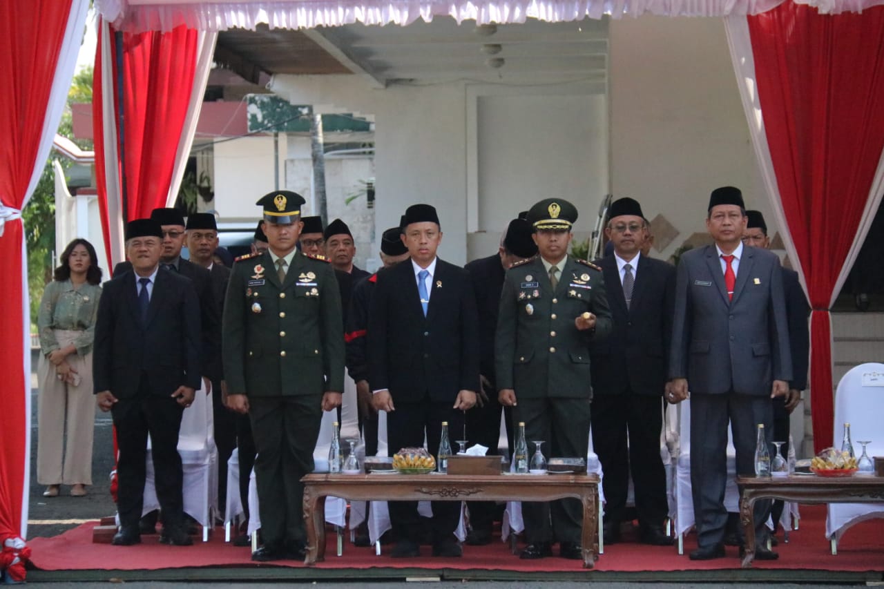 Upacara Peringatan Hari Kesaktian Pancasila Tahun 2023 tingkat Kabupaten Ngawi ini dengan Inspektur Upacara Bupati Ngawi H. Ony Anwar Harsono.
