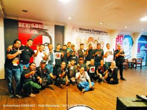 Bolonemase Semarang menjadi saksi sejarah untuk bisa membawa Mas Gibran sebagai simbol pemuda untuk kebaikan Indonesia. kita selalu optimis bisa memenangkan pasangan Capres Cawapres di Pemilu 2024 yang rencana akan dilaksanakan pada tanggal 14/2/2024. dan kita mengetuk pintu langit untuk membukakan karena semua yang menentukan adalah Yang Diatas,” harap Fauzi Ardiansyah