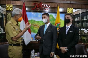 SEMARANG – Kilasfakta.com, Duta Besar Austria untuk Indonesia, Johannes Peterlik menemui Gubernur Jawa Tengah, Ganjar Pranowo, Pertemuan yang berlangsung di ruang kerja Ganjar Pranowo itu dibahas sejumlah peluang kerjasama, diantaranya sektor pendidikan dan UMKM, senin (14/6/2021)