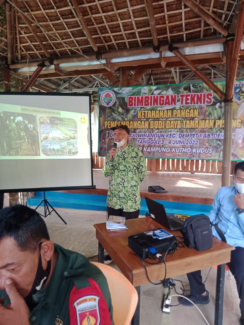 Dalam kesempatan kunjungan dan pelantihan ini seluruh peserta bimtek diberikan pengenalan tentang budidaya pisang, walau pisang adalah buah sederhana, namun bila dikelola dan dirawat dengan baik, dapat memberikan income tiap bulan. Sehingga materi yang diangkat adalah “bertani pisang bisa gajian tiap bulan”,
