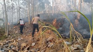 SRAGEN – Kilasfakta.com, Personil dari Polsek Gesi bersama anggota Koramil 12 / Gesi dan BPBD, GCG (Gerakan Cepat Gesi), BAGANA, Warga, dengan gerak cepat langsung berusaha memadamkan kebakaran daun kering atau seraseh daun jati dan semak di lahan milik warga Desa Tanggan dan, Desa Gesi, Minggu (8/Oktober/2023) pukul 14.30 wib.