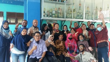 Kedatangan alumni lintas angkatan yang dimulai dari angkatan tahun 1984 diwakili 15 orang dengan menerapkan protokol kesehatan menyerahkan bantuan alat protokol kesehatan berupa disinfektan, faceshield, masker, handsanitizier, sabun cuci, tempat mencuci tangan.