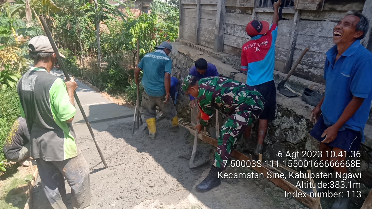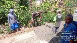 NGAWI – Kilasfakta.com, Untuk menjaga hubungan yg baik antara Babinsa dengan warga binaan, Sertu Cholib Babinsa Desa Kuniran Koramil 0805/10 Sine Kodim Ngawi melaksanakan giat Kerja Bakti Rabat jalan di Desa Kuniran Kecamatan Sine,Minggu (06/08/2023)