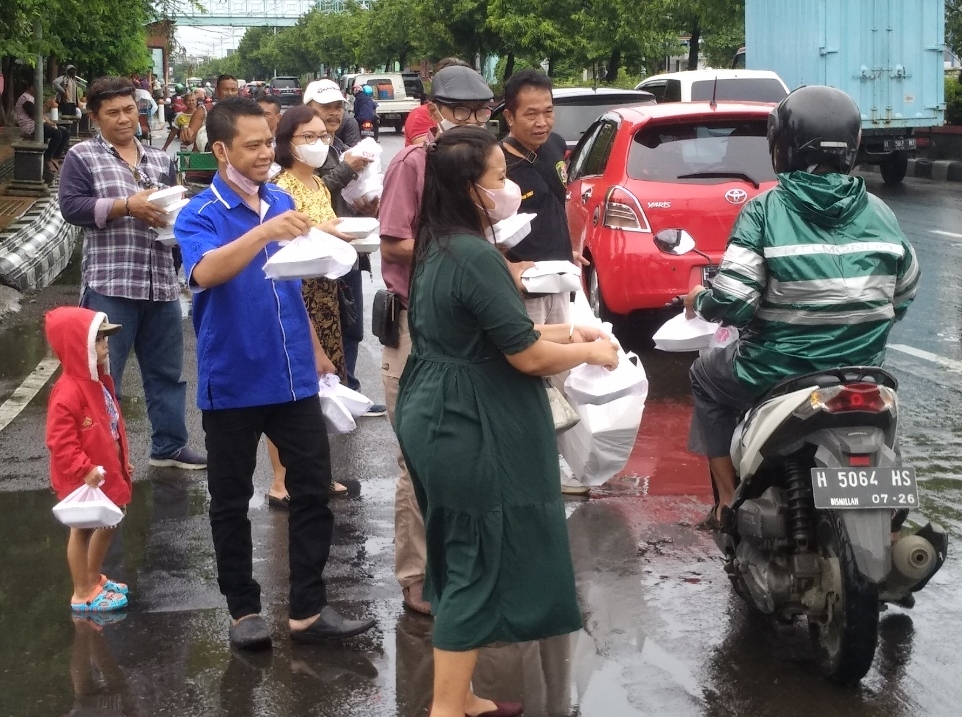 SEMARANG – Kilasfakta.com – Hujan yang tak kunjung reda dari pagi sampai siang hari tidak menyurutkan semangat wartawan Jaringan Jurnalis Independen (JJI) bersama Wartawan Peduli Sosial (WPS) melaksanakan kegiatan rutin jumat berkah dengan membagikan sebanyak kurang lebih 300 paket nasi kotak di depan monumen Tugu Muda sampai jalan Siliwangi depan pasar Bulu Kota Semarang Jumat (18/02/2022) Kegiatan ini dihadiri oleh jurnalis dari berbagai organisasi Pers dan dari berbagai media Online dan TV ikut turun dijalan dalam rangka kegiatan jumat berkah.