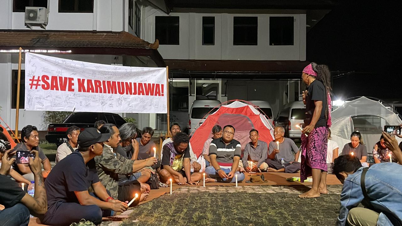 JEPARA – Kilasfakta.com, Puluhan warga karimunjawa yang terdiri dari perwakilan petani rumput laut, nelayan, paguyuban biro wisata karimunjawa, tour guide, paguyuban hotel dan restoran karimunjawa Jepara yang tergabung dalam Save Karimunjawa melakukan aksi kemah bersama di halaman kantor DPRD Kabupaten Jepara, Selasa (02/05/2023) malam.