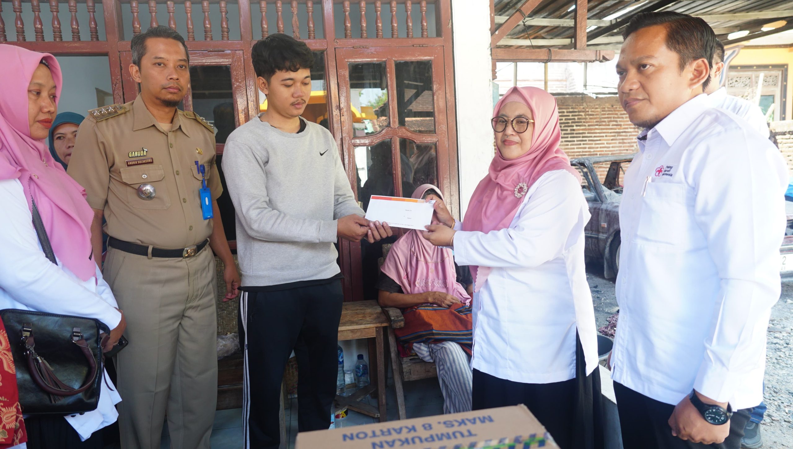 Atik Sudewo didampingi Camat Sukolilo dan jajaran pengurus PMI serta perangkat Desa Baturejo datang ke rumah Aan Setiawan untuk meninjau korban kebakaran dan memberikan bantuan.