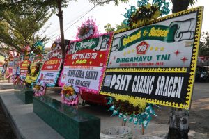 SRAGEN – Kilasfakta.com, Hari ini TNI diseluruh Indonesia merayakan hari ulang tahunnya yang ke-78. Upacara peringatan secara terpusat digelar di silang Monas Jakarta, dan secara terpisah digelar di kesatuan masing-masing. Kodim Sragen hari ini menggelar upacara HUT TNI di halaman Makodim 0725/Srg. Hari ini Makodim di penuhi oleh karangan bunga yang bertuliskan “Dirgahayu TNI ke-78”. Karangan bunga berjajar dari pintu masuk Makodim hingga pintu keluar bahkan sampai diluar pagar. Rabu, 05/10/2023.