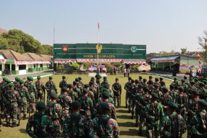 Selesai upacara dilanjutkan Tasyakuran di aula guyub rukun Makodim Sragen. (Hendro)