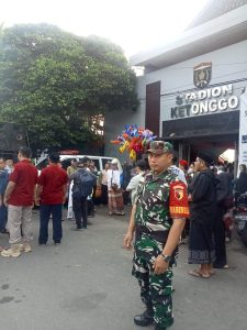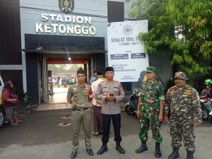 NGAWI – Kilasfakta.com, Guna menciptakan situasi kondisi yang aman dan kondusif, Danramil 0805/01 Ngawi Kapten Inf Kasi Beserta Anggota Babinsanya melaksanakan pengamanan Sholat Idul fitri di Stadion Ketonggo Ngawi, Jumat 21 April 2023.