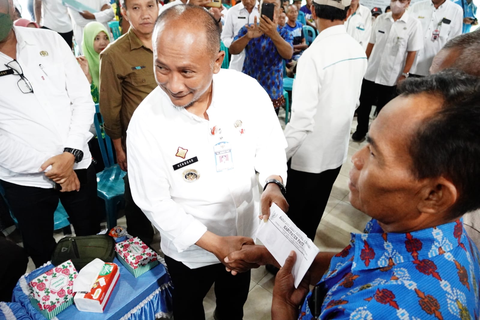 Selain Pj Bupati Pati, turut hadir pula Ketua Basnaz, Kepala Dinsos, Camat Tambakromo, Camat Winong, OPD terkait, Kepala Desa Sinomwidodo, Kepala Desa Godo, serta pimpinan Bank Jateng, dan para penerima bantuan bencana.