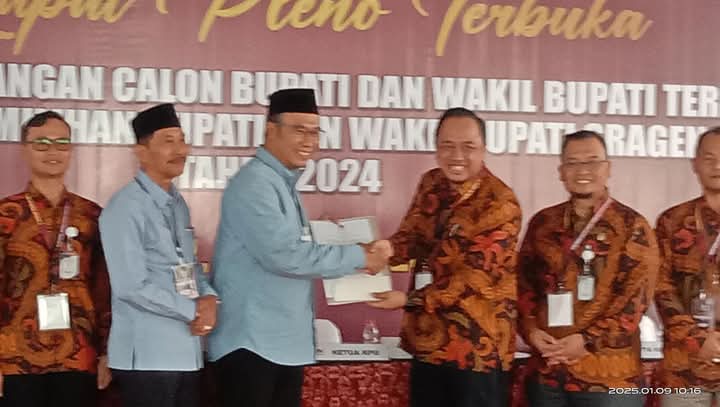 Dalam Pleno itu, Ketua KPU membacakan berita acara penetapan pasangan calon bupati dan wakil bupati terpilih Kabupaten Sragen dalam pemilihan 2024.