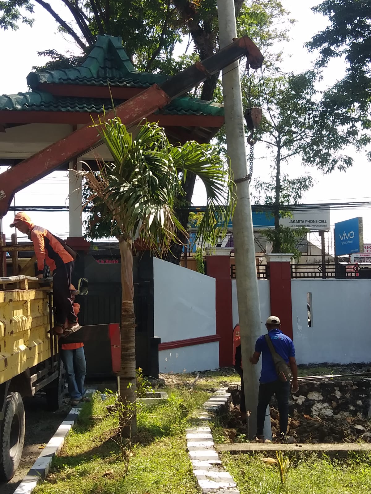 Kasi Binadik dan Giatja bersama dengan Kaur Umum Supriyanto memantau dan mengamati pekerjaan penambahan daya listrik.