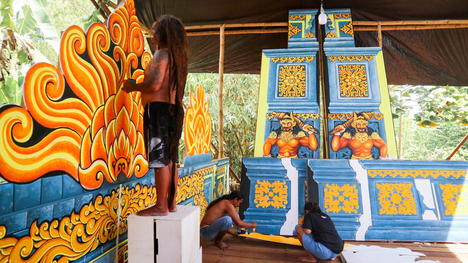 Mulai dari tata dekorasi, kostum para pemain, makeup para wayang, hingga penyusunan adegan cerita lakon.