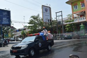 DEMAK – Kilasfakta.com– Demak dalam rangka mengantisipasi penyebaran Covid-19 agar tidak meluas, Pemerintah Kabupaten Demak melaksanakan penyemprotan disinfektan yang diawali di alun-alun Kabupaten Demak.