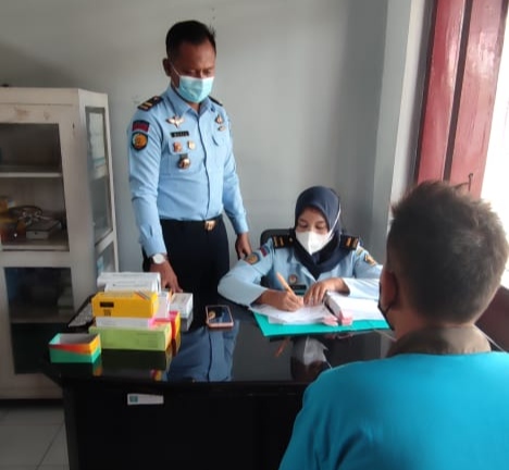 Di kesempatan yang sama, Ayu Farahnas H ,AMK selaku tenaga kesehatan menyampaikan, tugas kami selaku tenaga kesehatan yakni melayani segala keluhan narapidana. Untuk itu kepada warga binaan jangan segan dan malas berobat, agar kondisi tubuh tetap sehat, tegas Ayu F. Hanindita.