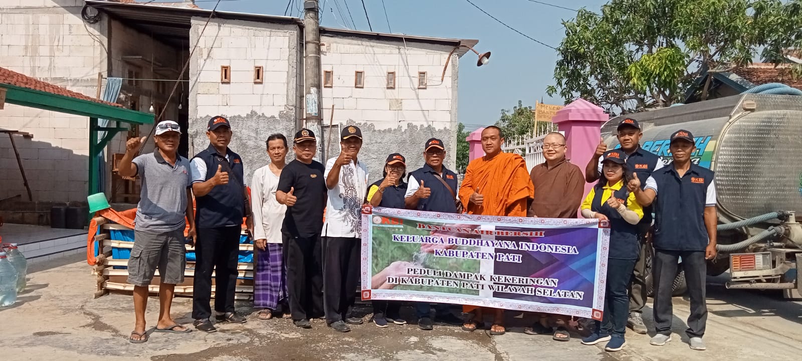 “Kami, warga umat Buddha, Keluarga Buddhayana Indonesia Kabupaten Pati ikut peduli kepada warga Kabupaten Pati khususnya di Wilayah Pati Selatan yang terdampak bencana kekeringan, dengan memberikan bantuan air bersih sebanyak empat puluh tangki di enam kecamatan,” beber Sutriman.