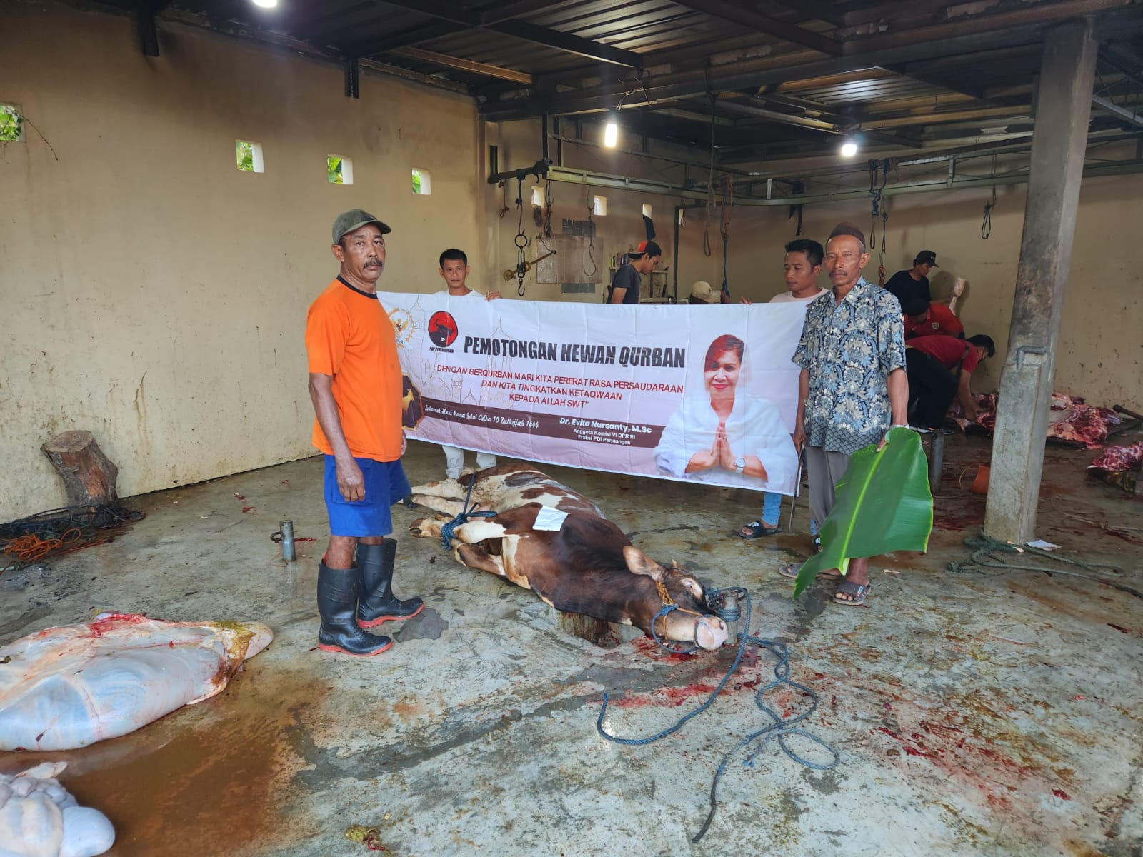 PATI – Kilasfakta.com, – Dr. Evita Nursanty, SH, M.Sc yang merupakan Anggota DPR RI dari Dapil III tahun ini kembali memotong dua ekor sapi sebagai hewan qurban bagi warga Pati. Penyebelihan hewan qurban ini merupakan kegiatan rutin yang dilakukan Evita setiap tahun di Pati.