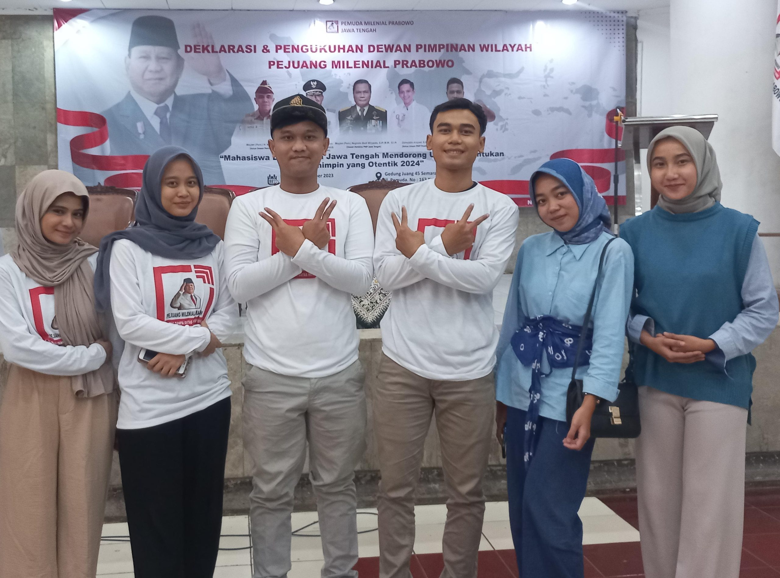 Para anak muda yang berlatar belakang dari alumni BEM, Mahasiswa S1 ataupun Mahasiswa S2, yang tergabung dalam Komunitas “Pejuang Milenial Prabowo (PMP)” mendukung penuh deklarasi Prabowo-Gibran dan siap memenangkan pasangan Prabowo-Gibran di Pilpres tahun 2024.
