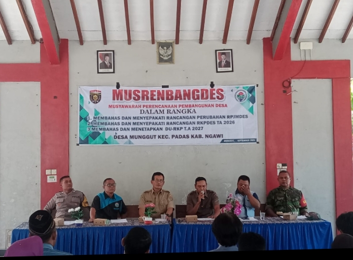 Ngawi – Kilasfakta.com – Pemerintah Desa Munggut kembali menggelar MUSRENBANGDES ( musyawarah Perencanaan Pembangunan Desa ) Tahun 2025 pada hari Senin 22 September 2025 di pendopo Desa Munggut. Acara berlangsung dari pukul 09.00 WIB hingga selesai dan dipimpin langsung oleh Kepala Desa Munggut Edi santoso Musrenbangdes ini menjadi langkah awal dalam menyusun program pembangunan desa yang partisipatif, melibatkan berbagai element masyarakat untuk bersama-sama merumuskan prioritas pembangunan yang sesuai dengan kebutuhan desa.