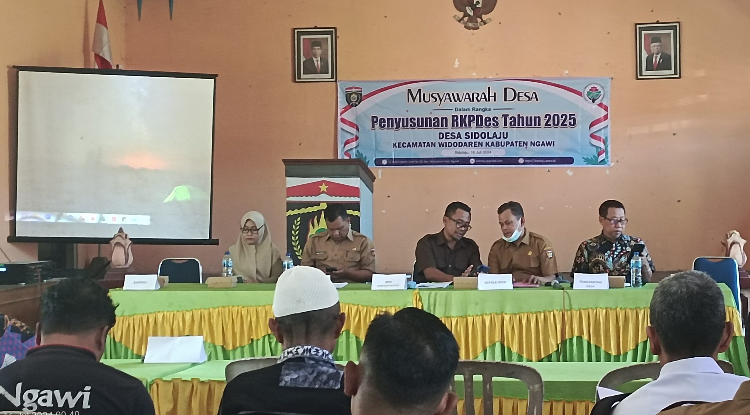 Musyawarah Desa atau disebut Musdes RKPDes Tahun 2025 dilaksanakan pada rapat pemerintah desa Sidolaju beserta BPD yang dilaksanakan pada hari Selasa, 16 Juli 2024, bertempat di Balai Desa setempat.