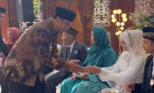 Bupati juga mendoakan agar kebahagiaan para pengantin pada hari pernikahan dapat terus terjaga dalam kehidupan rumah tangga mereka.