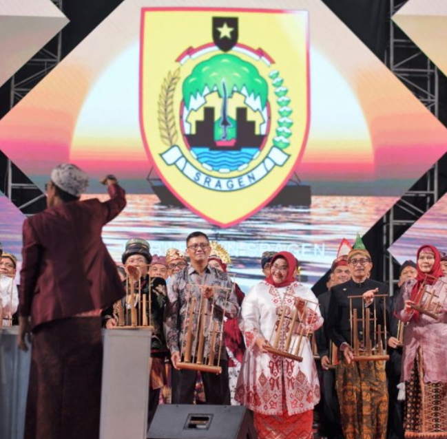 Rangkaian acara resepsi diisi dengan pemotongan tumpeng sebagai simbolis rasa syukur atas kemerdekaan yang telah diraih bangsa Indonesia 79 tahun yang lalu, ditutup dengan penampilan angklung kolaborasi Bupati Sragen bersama FORKOPIMDA dan Gita Harmoni Sukowati.