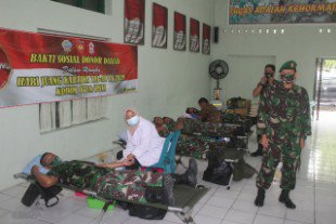 Donor darah dilakukan, mengingat kondisi serta situasi saat ini masih dalam pandemi covid-19 tentunya dapat mengganggu stok darah yang dimiliki PMI Kabupaten Pati. Sehingga untuk mengantisipasi serta membantu pengadaan stok darah diwilayah Kabupaten Pati dan kebetulan bertepatan dengan momentum peringatan hari juang TNI AD (HUT ke-75 TNI AD) tahun 2020, Kodim Pati mengadakan kegiatan donor darah yang diikuti oleh Prajurit jajaran Kodim Pati.