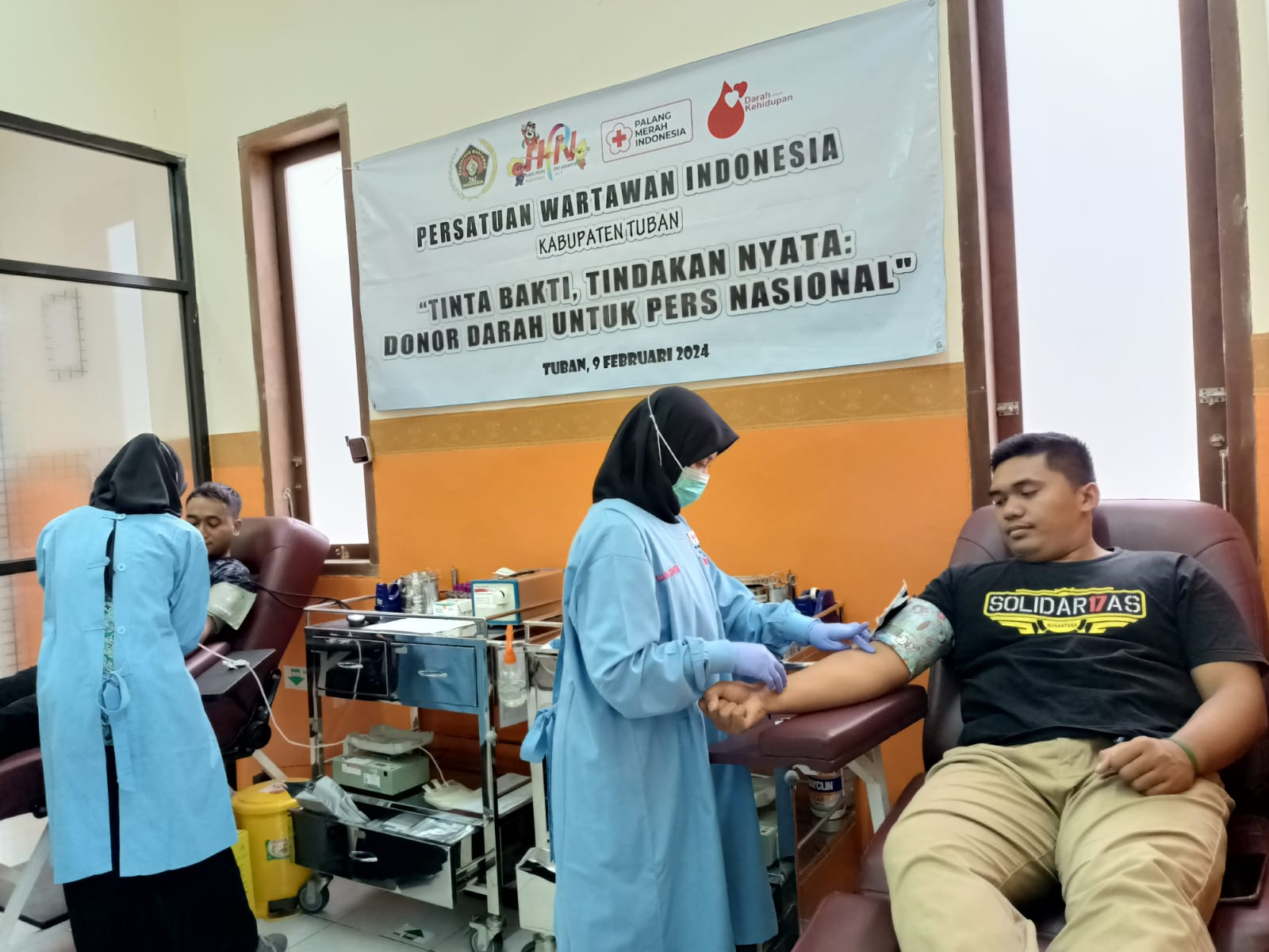 TUBAN – Kilasfakta.com, -Persatuan Wartawan Indonesia (PWI) Tuban menggelar tasyakuran dan donor darah di Aula PMI kabupaten setempat, pada Jumat (09/02). Kegiatan ini diselenggarakan dalam rangka Hari Pers Nasional (HPN) 2024. Turut hadir dalam kegiatan tersebut, di antaranya Kapolres, Dandim, Ketua DPRD, Kajari, PMI, Lapas Kelas IIB, Bank Jatim, PT SIG, Diskominfo SP, KPU, RSUD dr Koesma Tuban hingga para insan pers yang bertugas di Kabupaten Tuban.