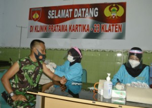 Pasi Ops Kodim 0723 /Klaten, Kapten Inf Sunarta mengatakan, pelaksanaan vaksin yang dilaksanakan dua tahap dan di utamakan personel Babinsa. Untuk saat sedang dilaksanakan Vaksin kepada personel diluar Babinsa di Klinik Pratama 23 Klaten.