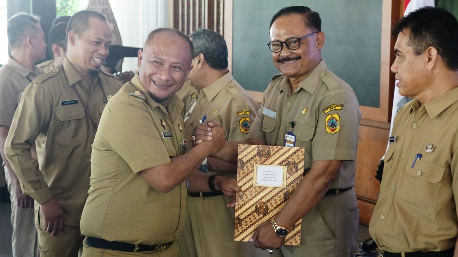 PATI – Kilasfakta.com, Senin, (20/2/2023) bertempat di Pendopo Kabupaten Pati Pj Bupati menyerahkan keputusan tentang pensiun PNS bulan April dan Mei 2023. Kegiatan ini turut dihadiri Sekda dan para kepala OPD.