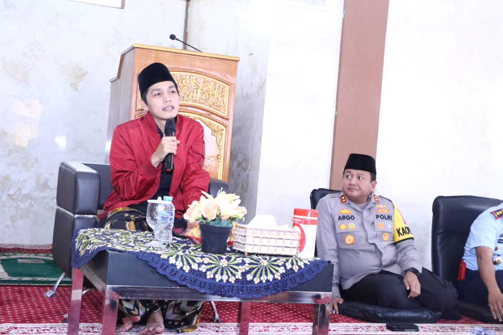 Pendakwah yang kondang dengan jargon ‘Dekengane wong pusat’ atau ‘wonge teko’ tersebut nampak akrab ketika menyampaikan tausiah kepada anggota Polres Ngawi. Sesekali terdengar tawa dari anggota yang larut dalam materi dakwah Gus Iqdam.
