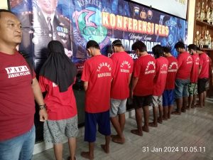 PEKALONGAN –Kilasfakta.com, Dalam rangka menciptakan Kondusifitas keamanan dan ketertiban masyarakat (Kamtibmas) menjelang Pemilihan Umum tanggal 14 Februari 2024 di kota Pekalongan, Polres Pekalongan Kota hari ini menggelar Konferensi pers dalam mengungkap kasus tindak pidana Narkotika dan Psikotropika dengan tersangka yang berjumlah 11 Orang di Serambi Polres Pekalongan kota, Rabu (31/1/2024)