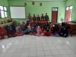Dalam kegiatan tersebut, Bhabinkamtibmas Desa Karanganyar Aipda Andik melakukan pendampingan kepada petugas penyuluhan dari Puskesmas Karanganyar dalam menyampaikan sosialisasi tentang pencegahan penularan HIV/AIDS dan kesehatan reproduksi di usia Remaja.
