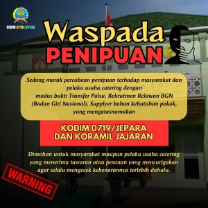 “Seperti yang dilansir berita dari beberapa media online sebelumnya, terjadi ketidak jelasan terkait 500 porsi pesanan mengatasnamakan Kodim 0719/Jepara, namun setelah dikonfirmasi ternyata tidak ada pesanan tersebut. “Dengan adanya kejadian ini, Dandim 0719/Jepara mengimbau masyarakat jangan mudah percaya dengan adanya penawaran kerjasama penyedia pesanan makanan bergizi gratis, pastikan dulu keabsahannya dan laporkan ke pihak terkait,” tandas John.