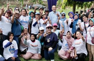 Yoyok turun dari mobilnya lalu menyapa, dan menyalami satu per satu warga yang datang. Tampak pasangan dari Calon Wakil Wali Kota Joko Santoso (Joss) ini sibuk melayani permintaan swafoto dari para caddy.