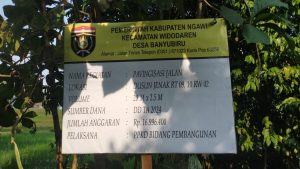 NGAWI – Kilasfakta.com, Dengan adanya anggaran bantuan Pemerintah Pusat melalui Desa masing masing dalam rangka mewujudkan dan meningkatkan perekonomian desa menuju yang lebih baik. Pemdes Banyubiru melakukan terobosan pembangunan sarana dan prasarana yang ada di desa.